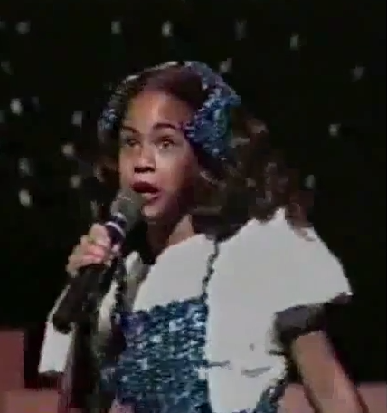 The performance was recorded years before she'd transform into the leader of Destiny's Child, an international solo success and the reigning queen of pop music. But even back then, performances like this foreshawdowed major success. Dressed as Dorothy, in a sequined dress (that we imagine Miss Tina created), little Sasha Fierce is singing "Home"....